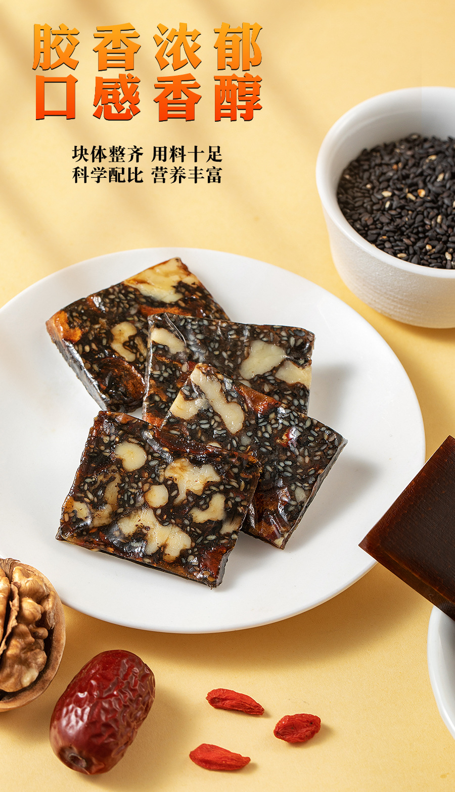 黒胡麻のクルミの阿膠餅の女性の滋養品の東阿の特産品は贈り物を販売して商品の山東阿膠固元の餅を持ちます。