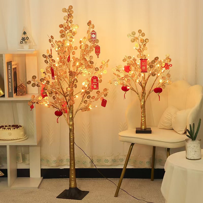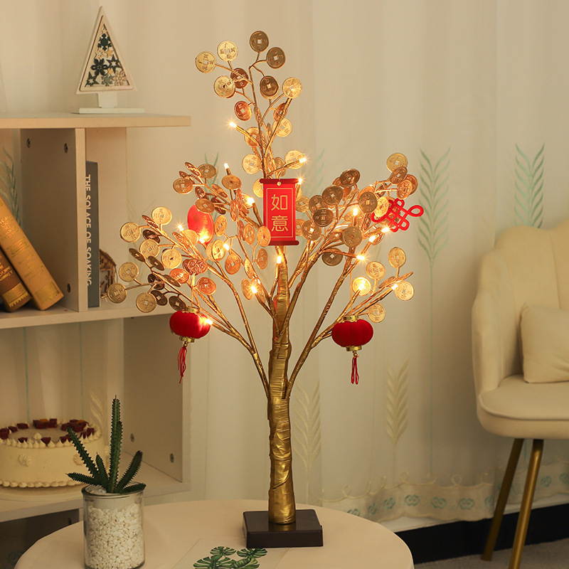 国境を越えた新年の銅銭樹灯旧正月の家の部屋の金持ちの木の装飾的な雰囲気のLED樹灯