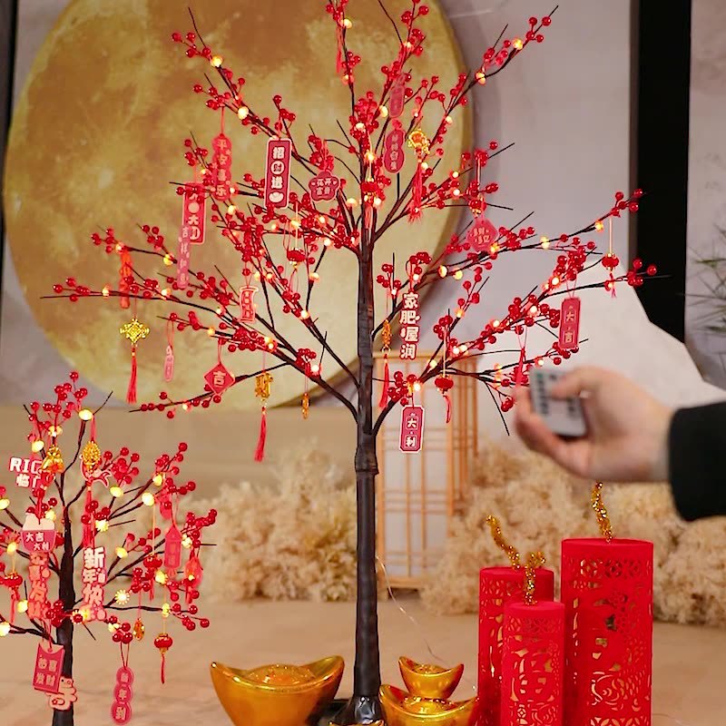 2024龍年新春金儲け冬青果樹灯客間装飾置物ホテル開業大吉家庭用樹灯