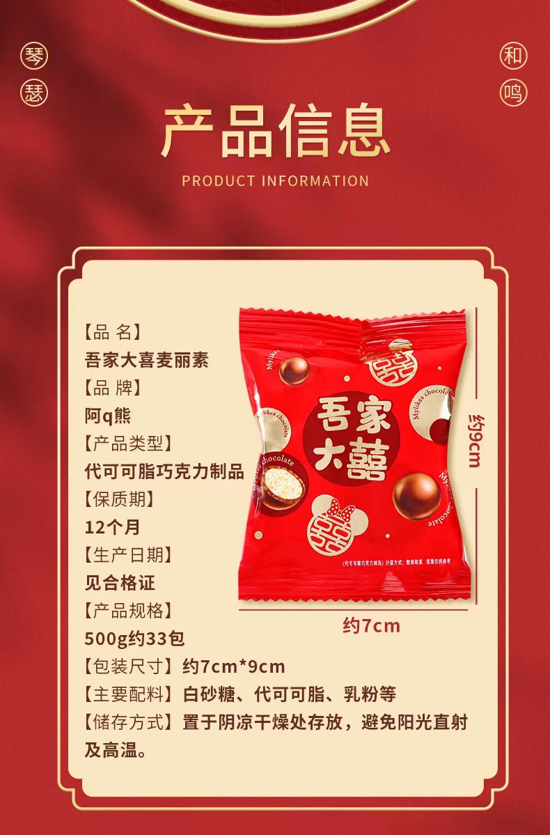 阿q熊吾家大喜麦丽素チョコレート豆ばら積結婚喜糖児童間食網紅キャンディー卸売り