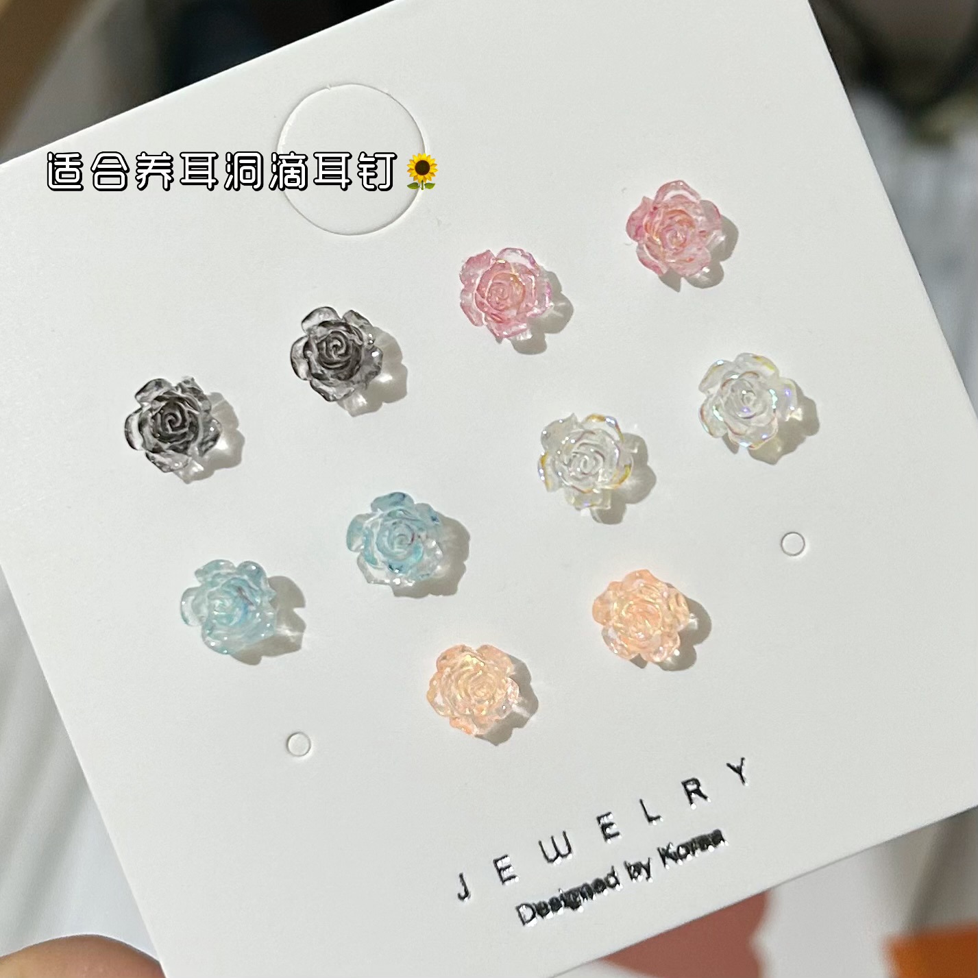 耳の穴を養うための小さな新鮮でカラフルな椿樹脂イヤリング、新しい気質のニッチなプラスチックイヤースティック、低刺激性イヤリング
