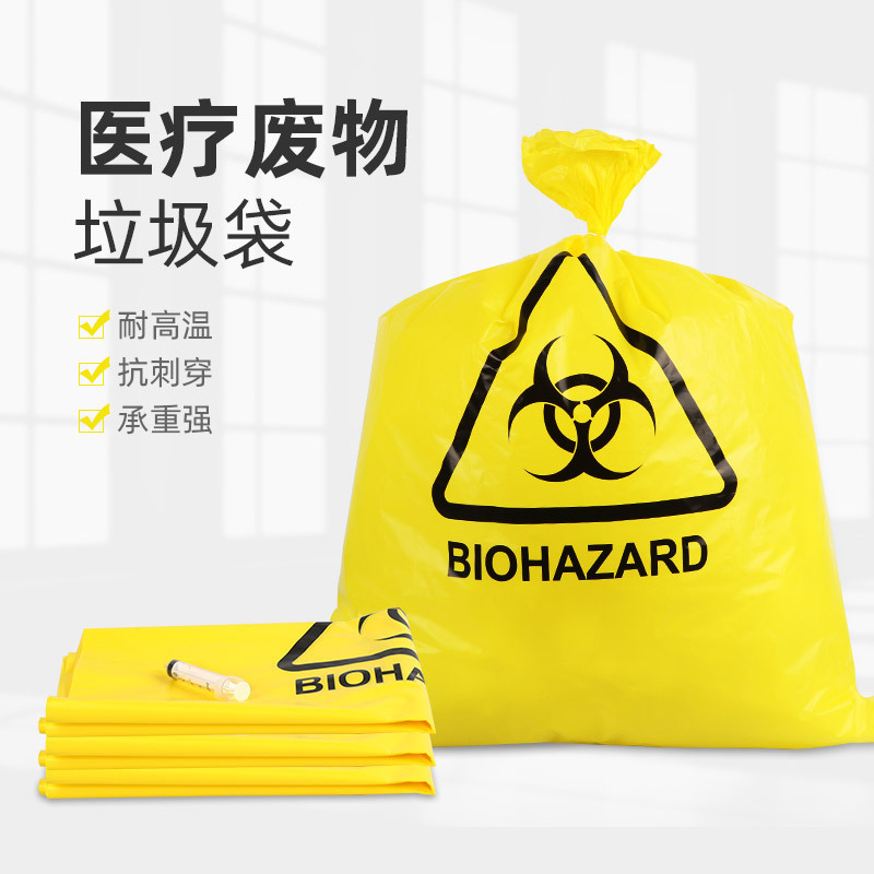 現物黄色耐高温121度生物危害ゴミ袋は使い捨て廃棄物プラスチックの平口を厚くする