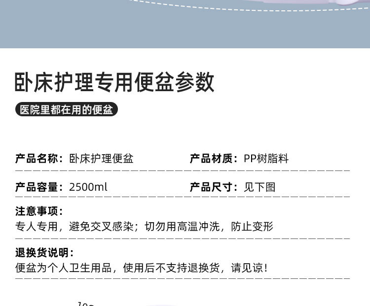 長い柄の傾倒式の便器の射出成形の便器の分離式の厚いプラスチックの大きい便器の老人の患者の寝たきりのおしっこの男女