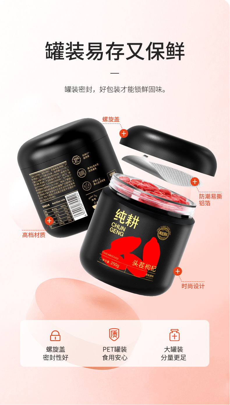純耕250g丸缶の切り株370粒クコの特級の赤いクコの寧夏の切り株クコの泡水クコの実