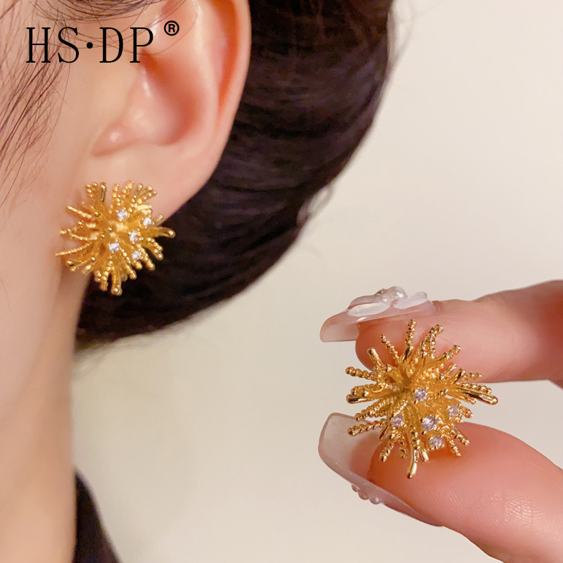小衆s925銀針金属タンポポ花火ピアス気質ファッション軽贅沢デザイン感イヤリング卸売り