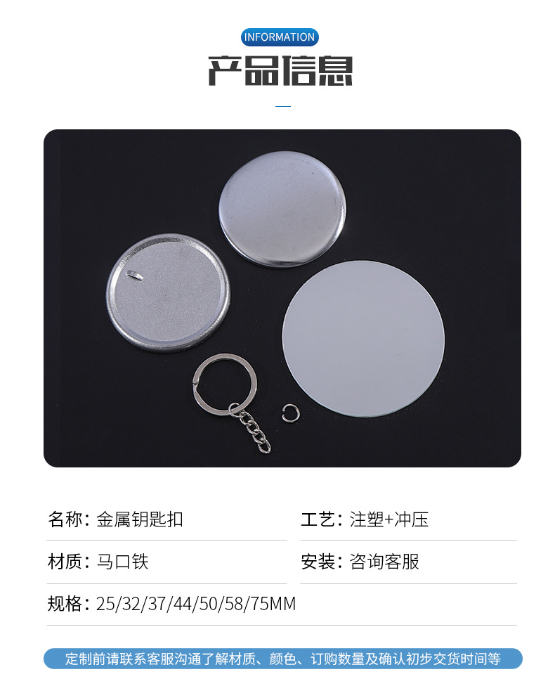 44MM/58MMバッジキーホルダー材料DIYキーチェーンブランク素材DIY広告用プチギフトピン