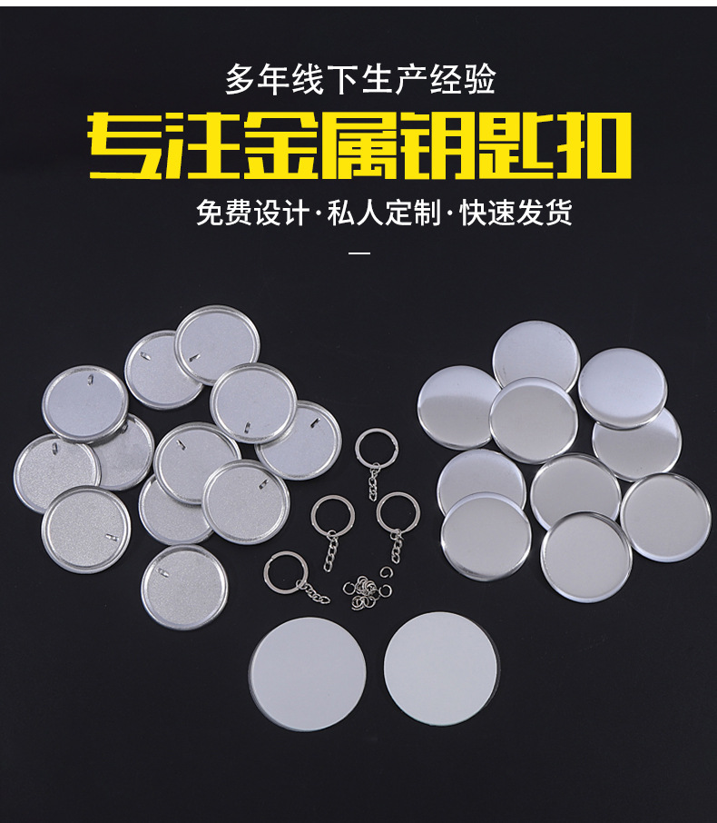 马口铁金属镜子钥匙链徽章空白手工DIY材料圆形吧唧饰品机器耗材