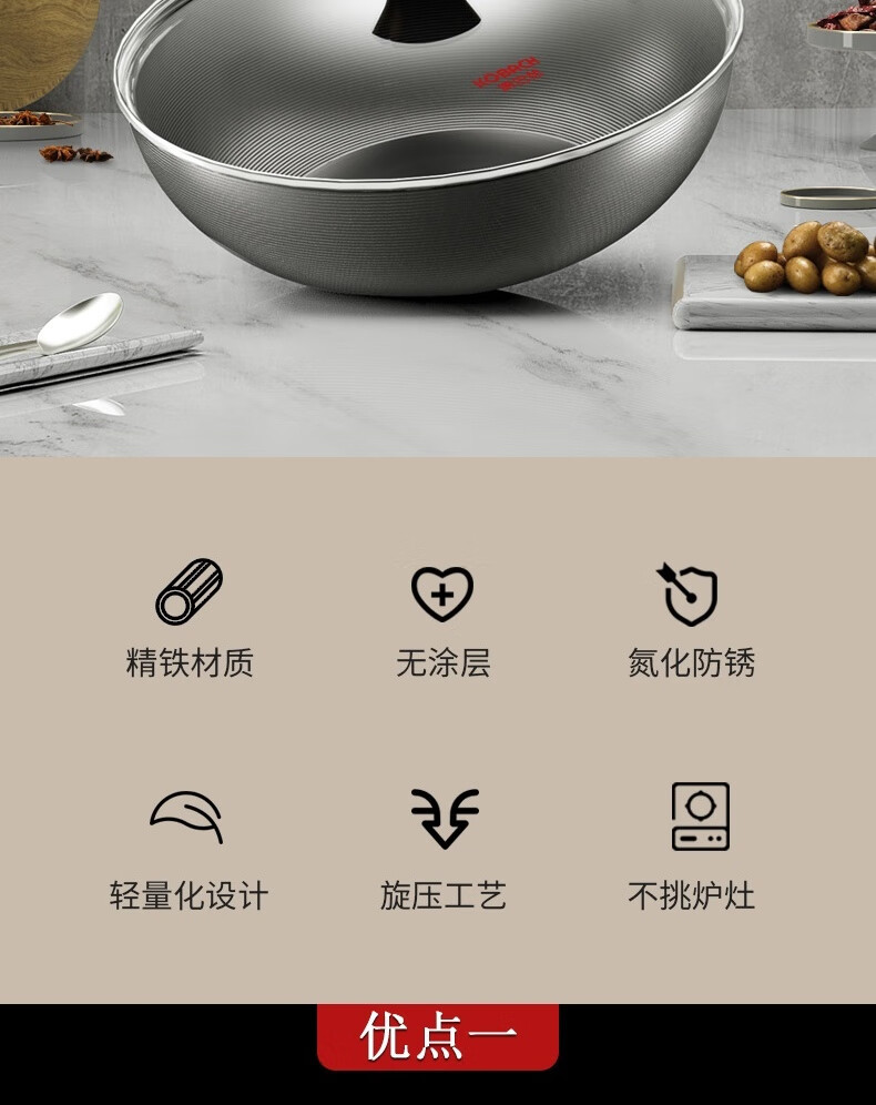 Kornbach 鉄鍋中華鍋家庭用ノンスティックパンチタンコーティングされていないバイオニックポット電磁調理器専用