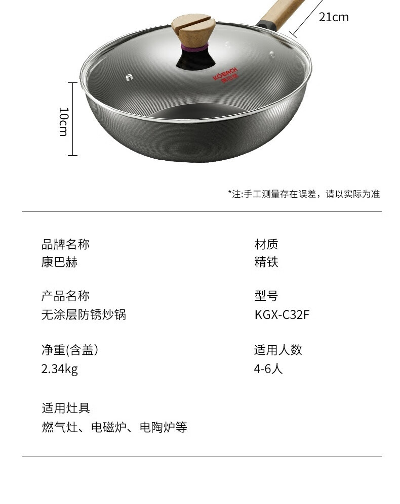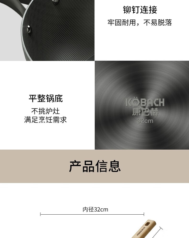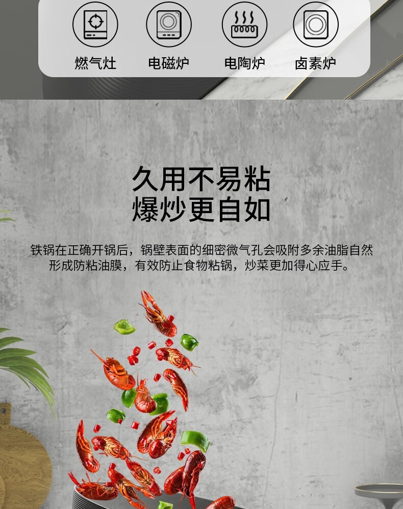 康バッハ炒め鍋コーティング防錆鉄鍋家庭用炒め鍋電磁ストーブ共通32cm