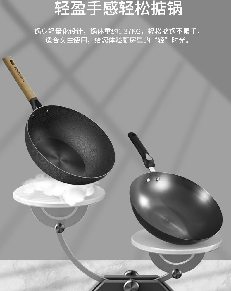 Kornbach 鉄鍋 無塗装ノンスティック鍋 家庭用中華鍋 平底中華鍋 電磁調理器 ガス専用鍋
