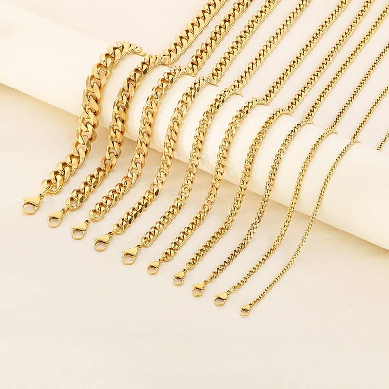 マルチサイズ 18K ゴールドメッキキューバチェーンロブスタークラスプ 6 面研削パーソナライズされたステンレス鋼のネックレス研削チェーンとチェーン
