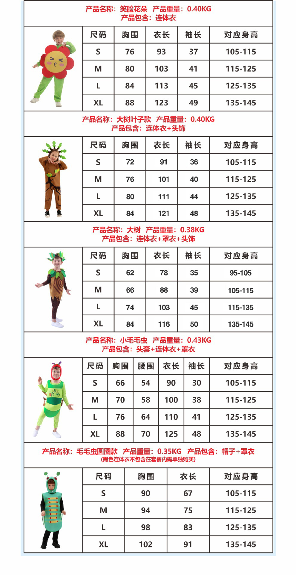 子供のローズコスプレ衣装パフォーマンス衣装太陽の花大きな木の毛虫の装飾