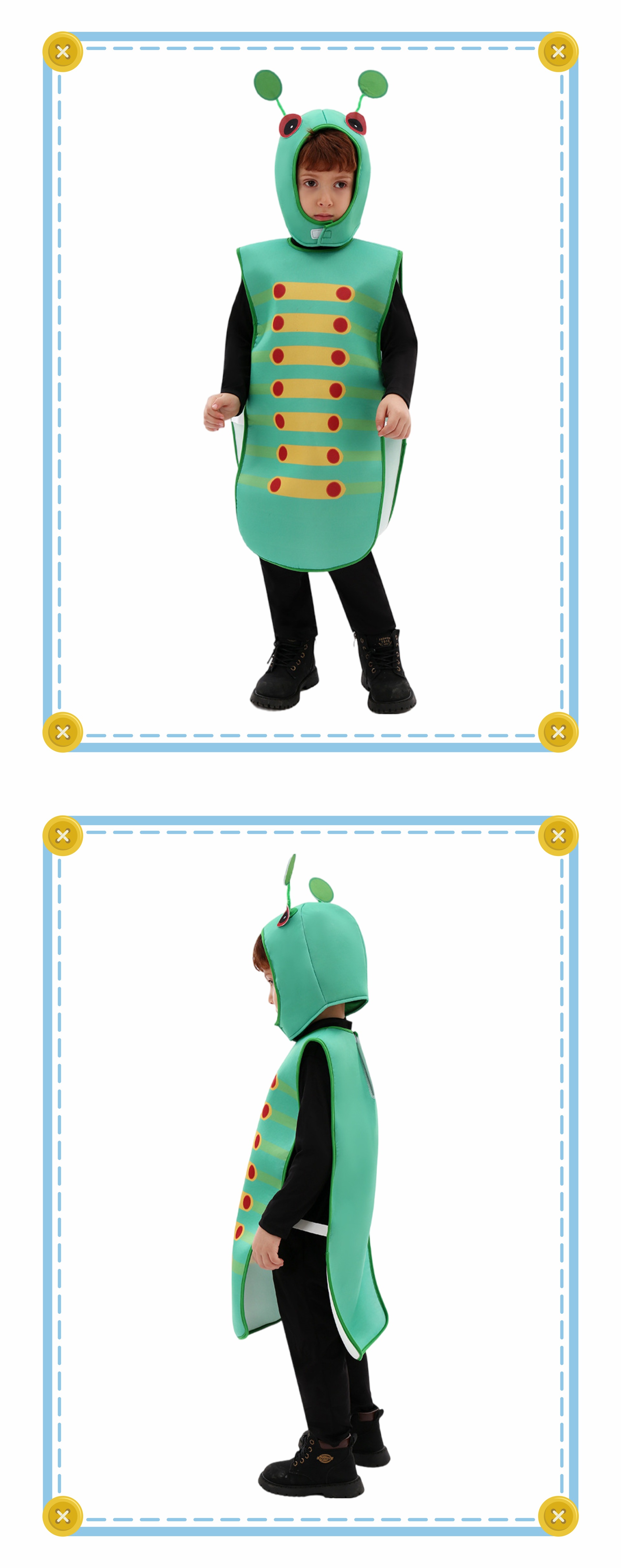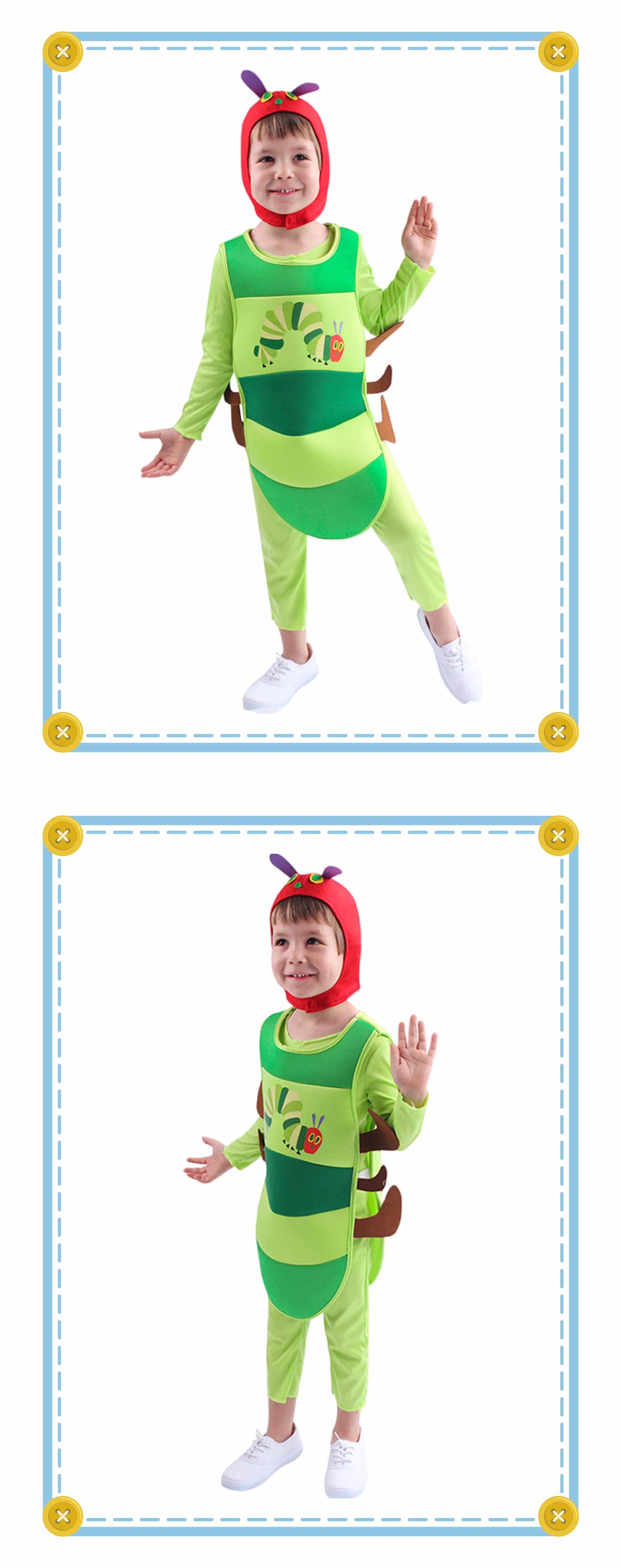 子供の祝日のパーティーは小さい毛虫の形を飾って服の役を演じます。