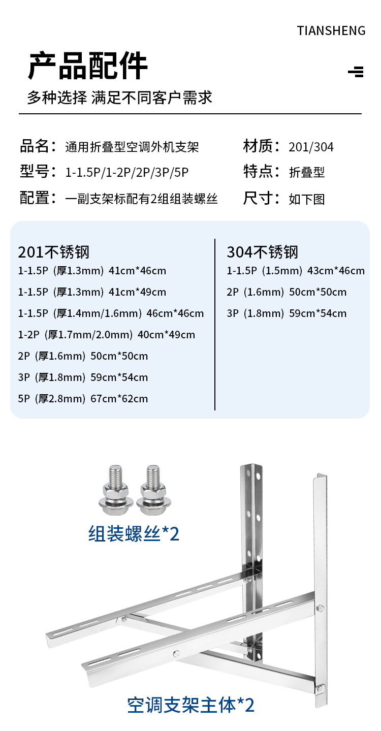 1.5p2p 3pステンレスエアコン外機ブラケット折りたたみブラケットエアコン外機ステンレスブラケットメーカー卸売り