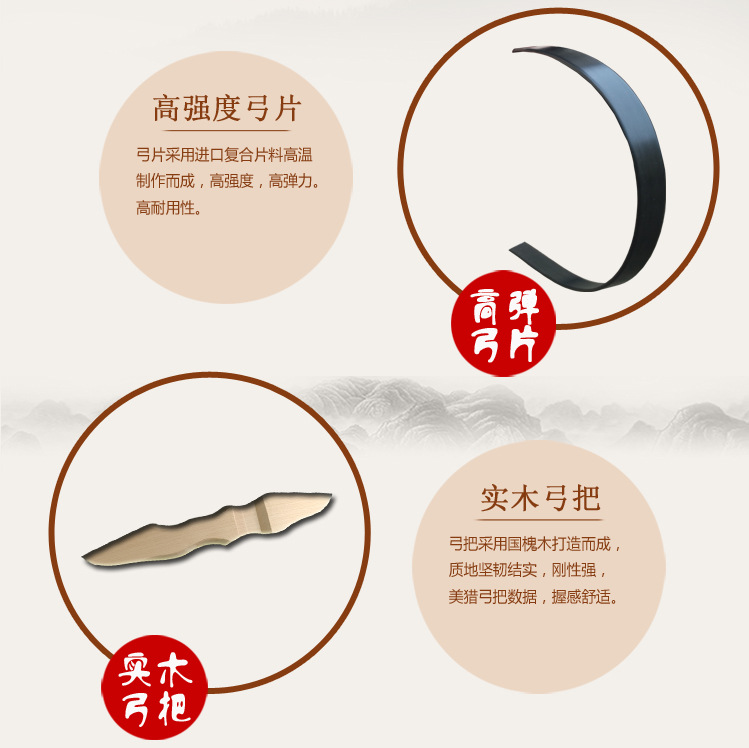 跨境热销灵云美猎弓木质分体式反曲弓箭鬼泣户外射箭渔猎层压弓片