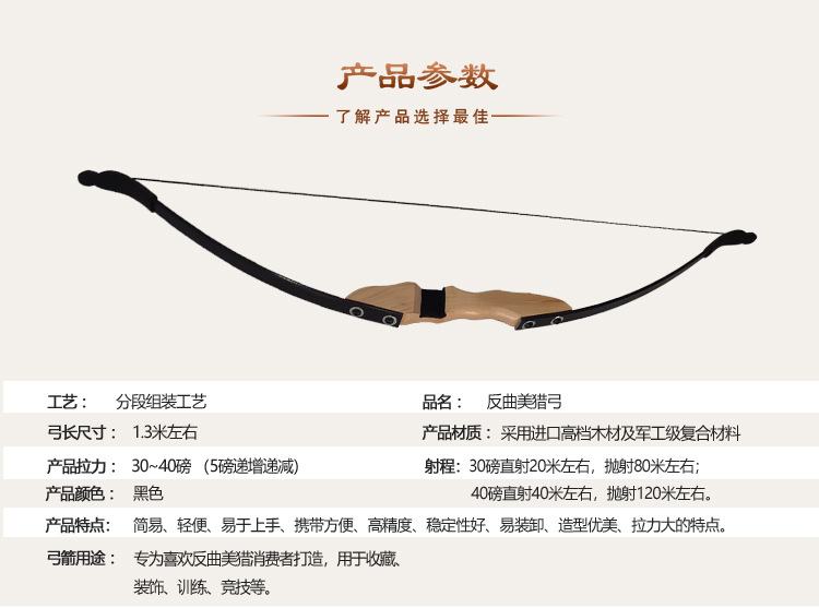 仕様 30ポンド ブラック リカーブ ハンティング,30ポンドウッドカラーリカーブビューティーハンティング,40ポンド ブラック リカーブ ハンティング,40ポンドの原木色の反曲美狩り