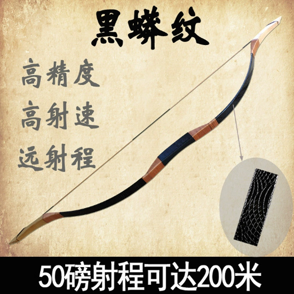 黑蟒纹传统弓箭传统射箭运动弓箭古代仿古反曲弓景区娱乐野外弓箭