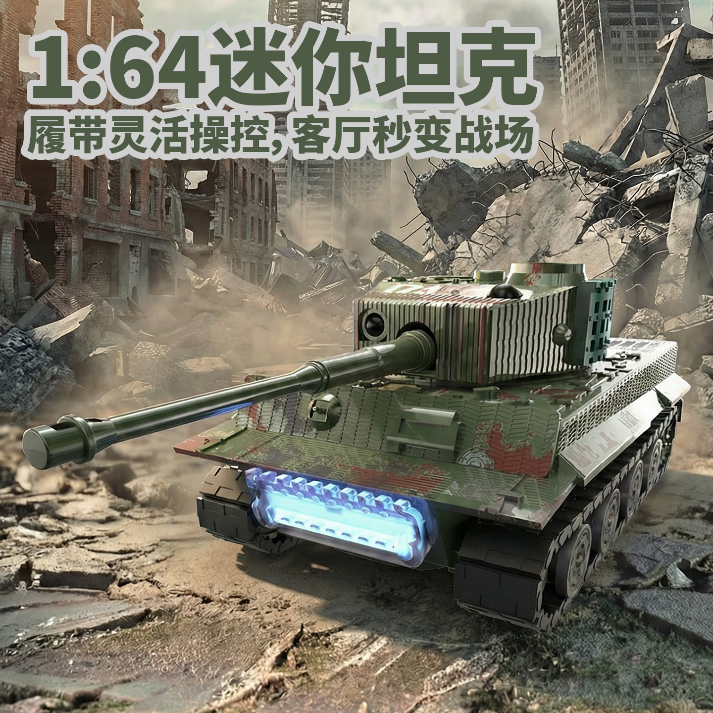 1:64迷你遥控对战坦克仿真开炮儿童遥控车军事坦克履带灯光音乐