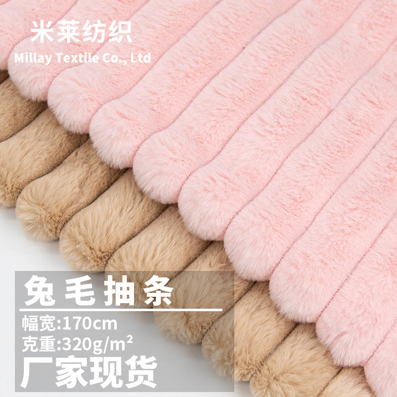 ウサギの毛の引き出しの綿毛の縦条のジャカードの小さいウサギの毛の坑条はウサギの毛の服装の包みの靴の帽子のおもちゃの生地に似せます。
