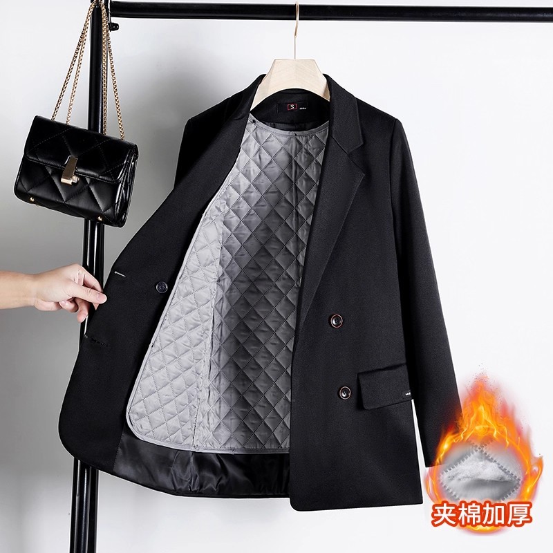【进阶小西装】黑色毛呢小西装外套女秋冬天加棉2026新款小个子冬