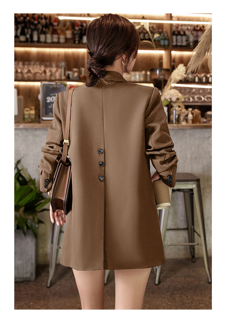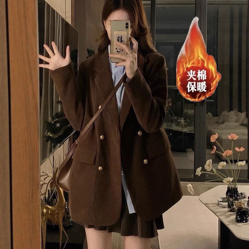 美拉德灯芯绒加厚加棉西装外套女秋冬宽松显瘦中长款加棉西服上衣