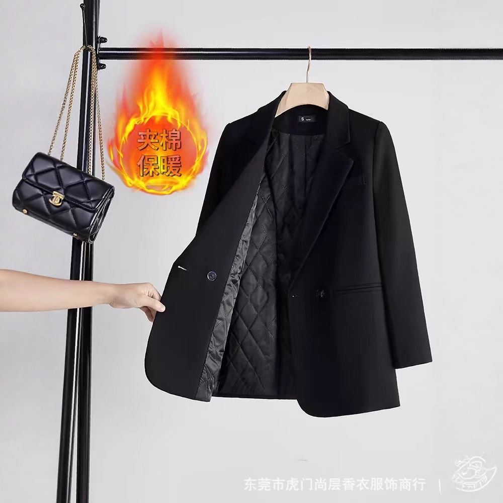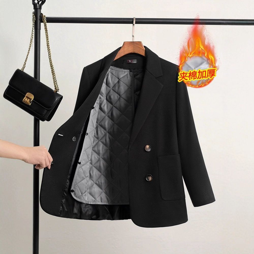 【拱针工衣】女长袖保暖高级感西装外套秋冬高端加厚夹棉小西服
