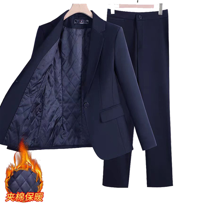 厚手の綿入りスーツセット 女性用 秋冬 ビジネススーツ 宝石店 ホテル受付 作業服 エレガント
