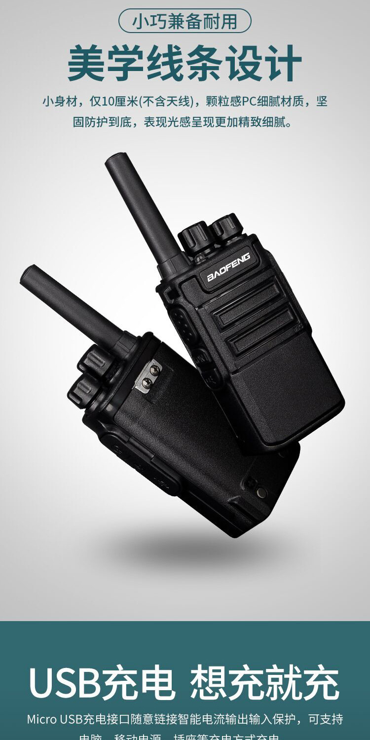 宝锋BF-M4轻薄USB充电超长待机大功率酒店建筑工地餐饮宝峰对讲机