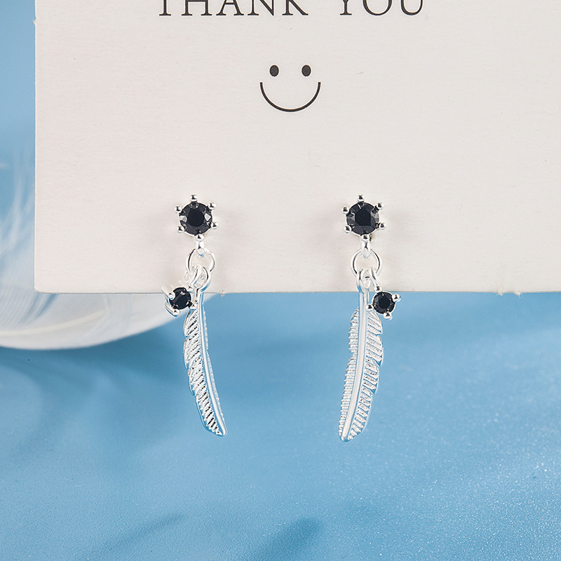 香港風の黒いドリルの羽の甘いクールなピアスの復古的な個性のシンプルな大衆のデザイン感の木の葉の小さい耳飾りの2022