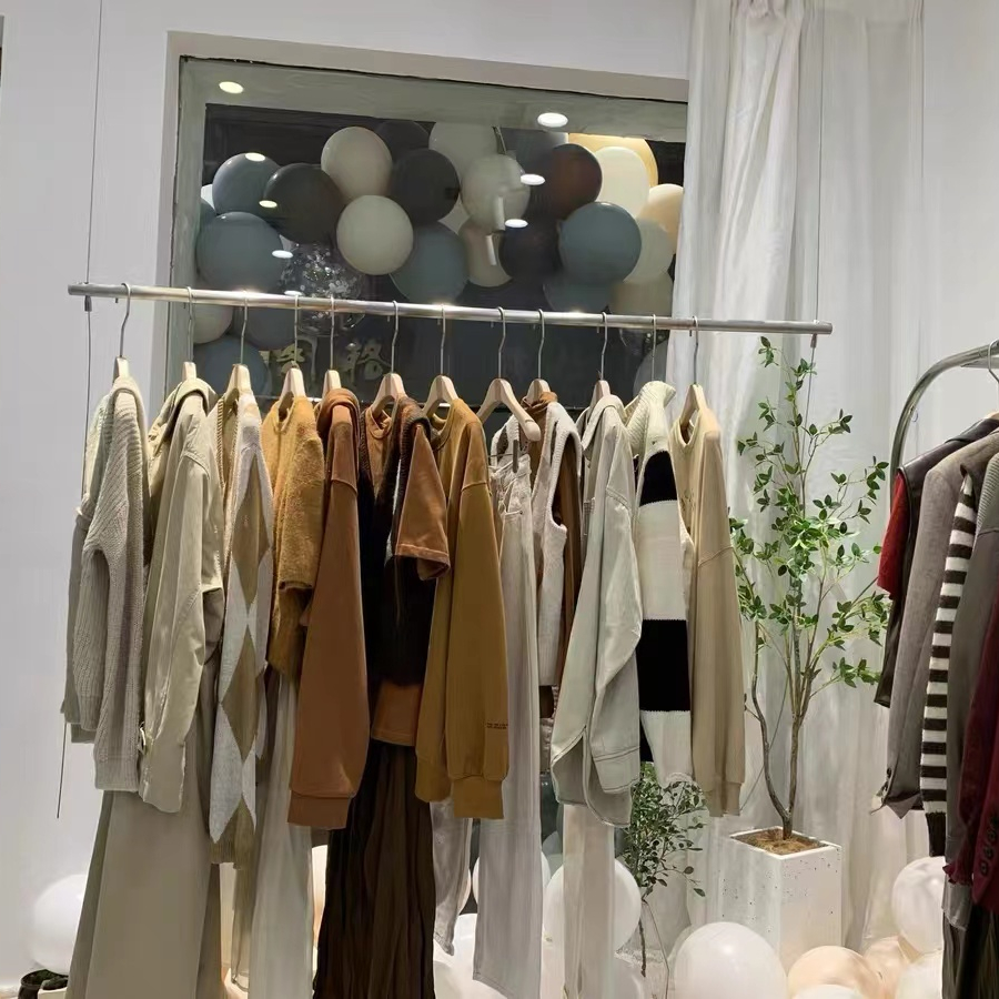 洋服店展示棚吊り下げハンガー婦人服店壁ショーウインドー吊り下げハンガーシンプル服掛けステンレス
