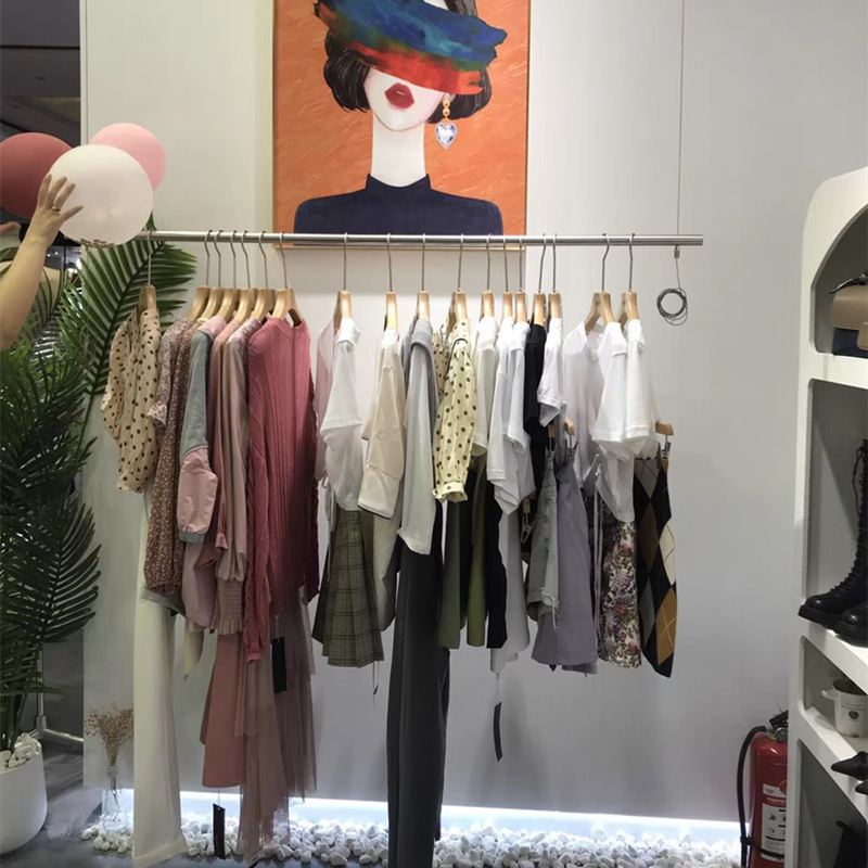 洋服店展示棚ステンレス床置き式婦人服店家庭用ハンガー移動中島陳列服棚