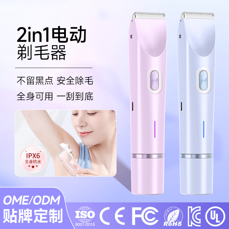 クロスボーダー電動シェーバー2in1女性用脇の下・デリケートゾーントリマー脱毛器水洗い可能乾湿両用軽量ミニ