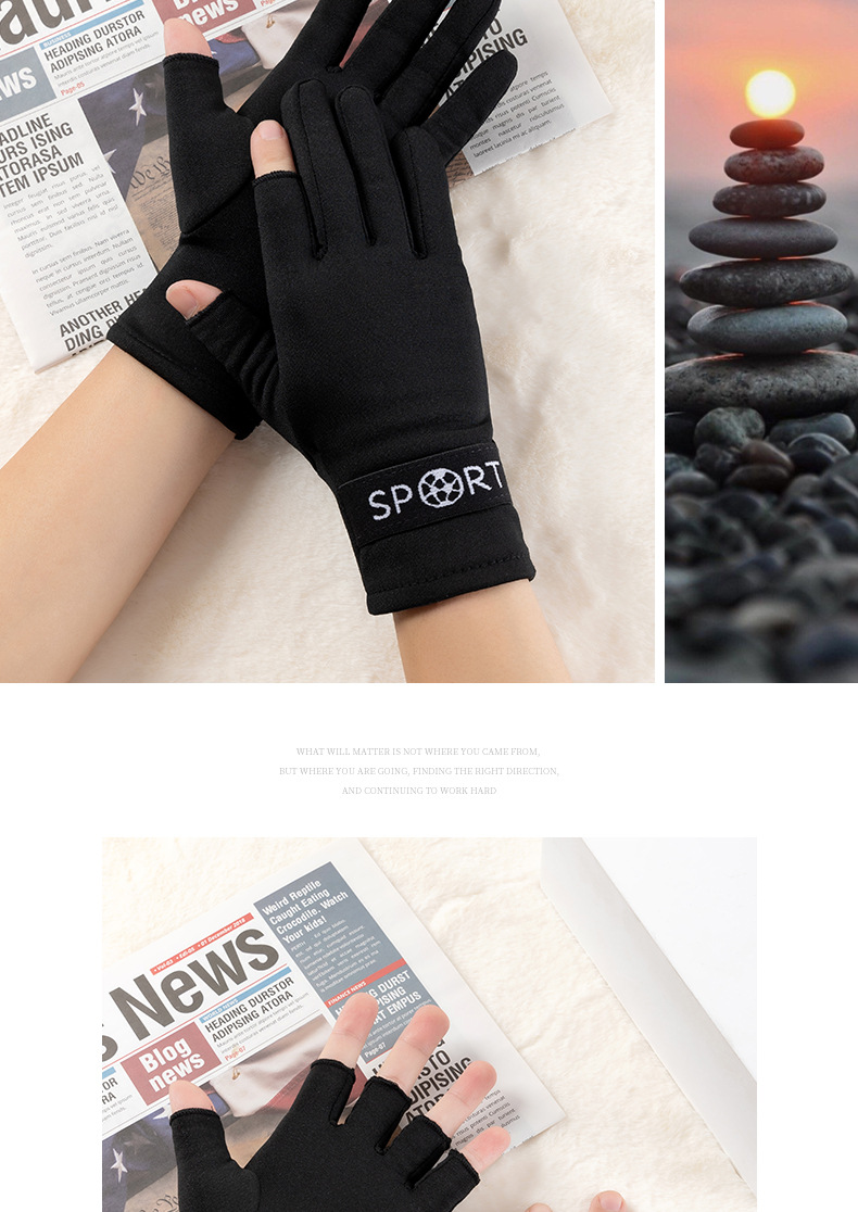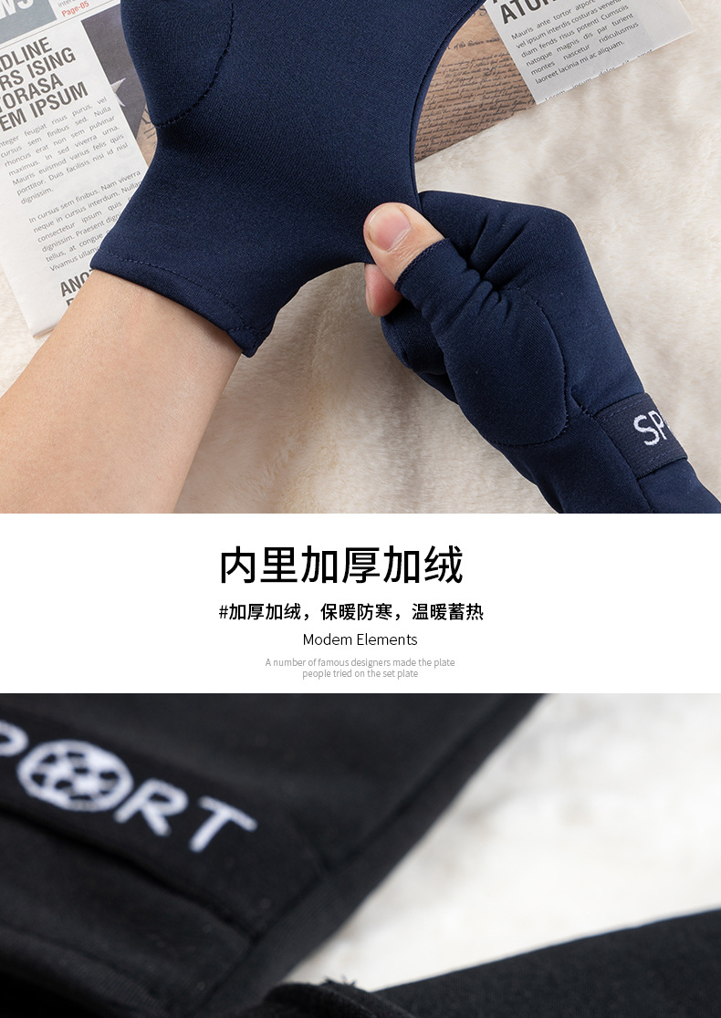 男款手套漏两指加绒保暖办公写字游戏触屏帅气舒适冬防寒骑行开车