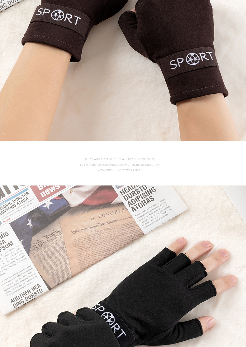 徳絨毛半指保温手袋男女秋冬学生が字を書くと、指を厚くしてタッチパネル手袋の半袖カバーの腕を厚くします。