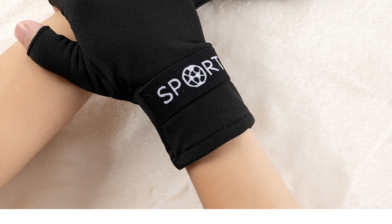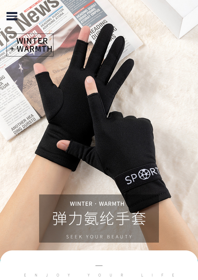 加绒手套冬季保暖韩版女拉绒漏两指工作弹力防寒骑车开车跳舞手套