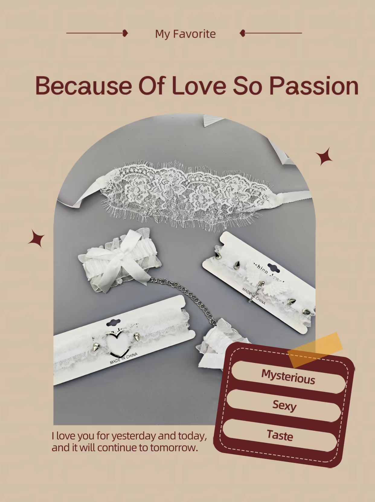 性感配饰女神情趣蕾丝面罩纯欲手铐项链爱心腿环调情