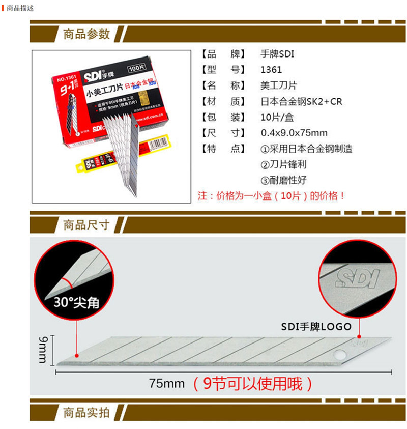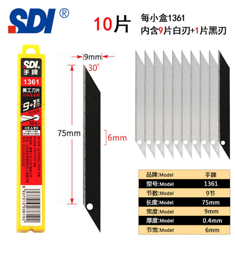SDI手牌美工刃トランペット自動車フィルムシール裁断紙9MM30度小刃卸売り1361