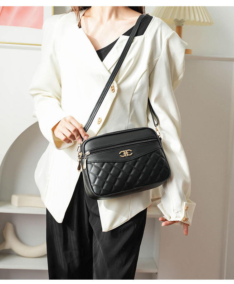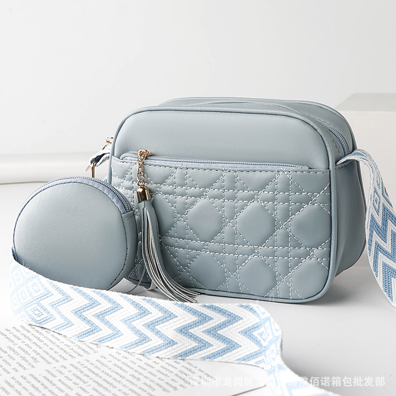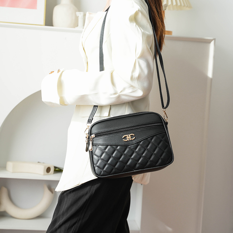绣花格纹女士斜挎包新款小方包时尚百搭手机包跨境热卖纯色单肩包