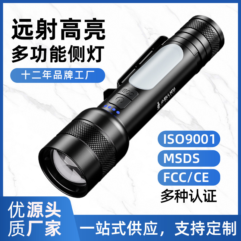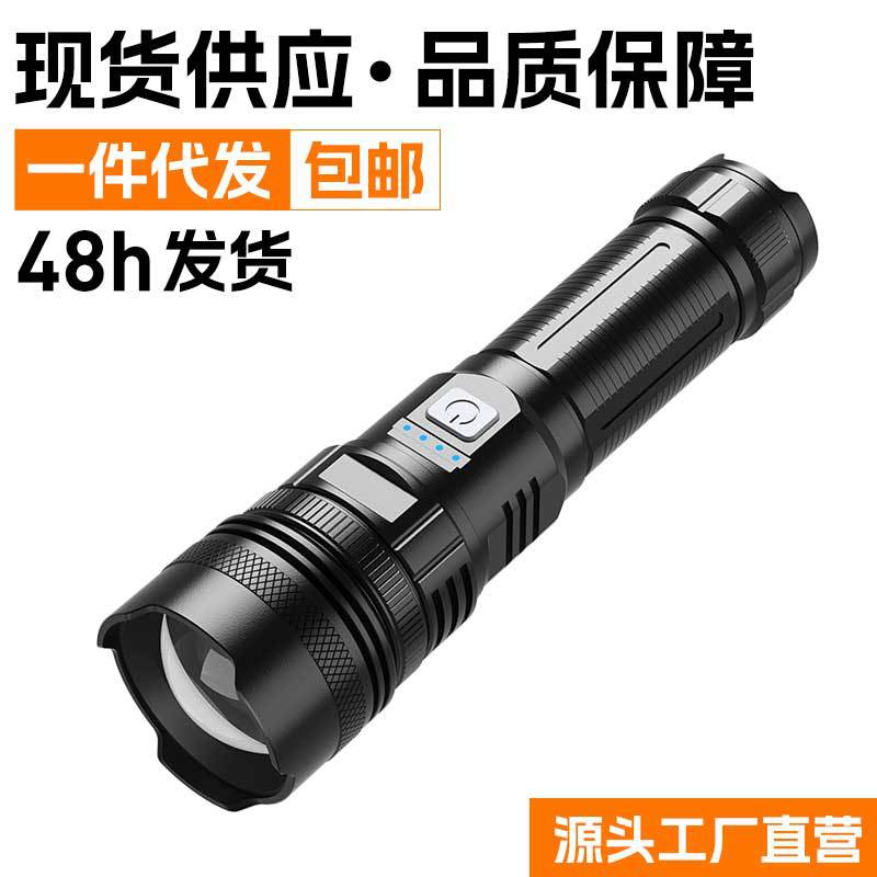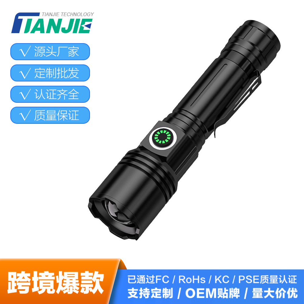 亚马逊爆款强光手电筒Type-C充电5档变焦手持灯高亮远射小型手电