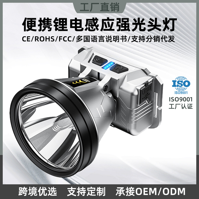 工場クロスボーダー充電照明灯屋外緊急夜釣り灯便利リチウム電気鉱灯卸売り感応強光ヘッドライト