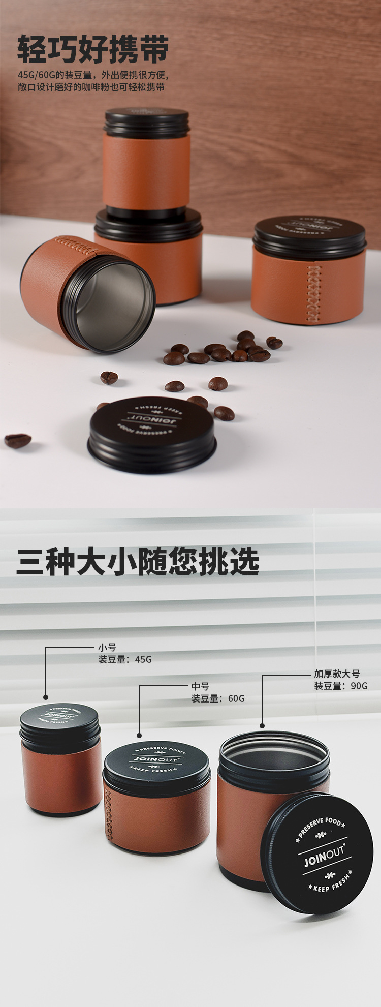 铝制迷你咖啡豆储存罐小巧旅游便携茶叶大容量户外咖啡粉密封罐