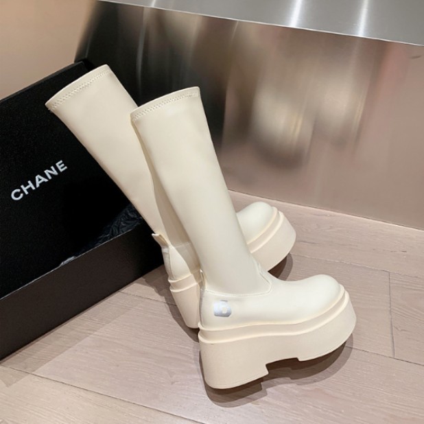 長足計画 ~ 矮子楽厚い底ブーツ女2024弾力中筒ブーツ女痩せブーツ長高筒騎士