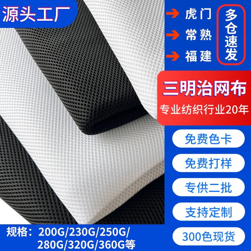 现货三明治网布鞋材箱包办公椅床垫面料宠物用品3D透气加厚网眼布