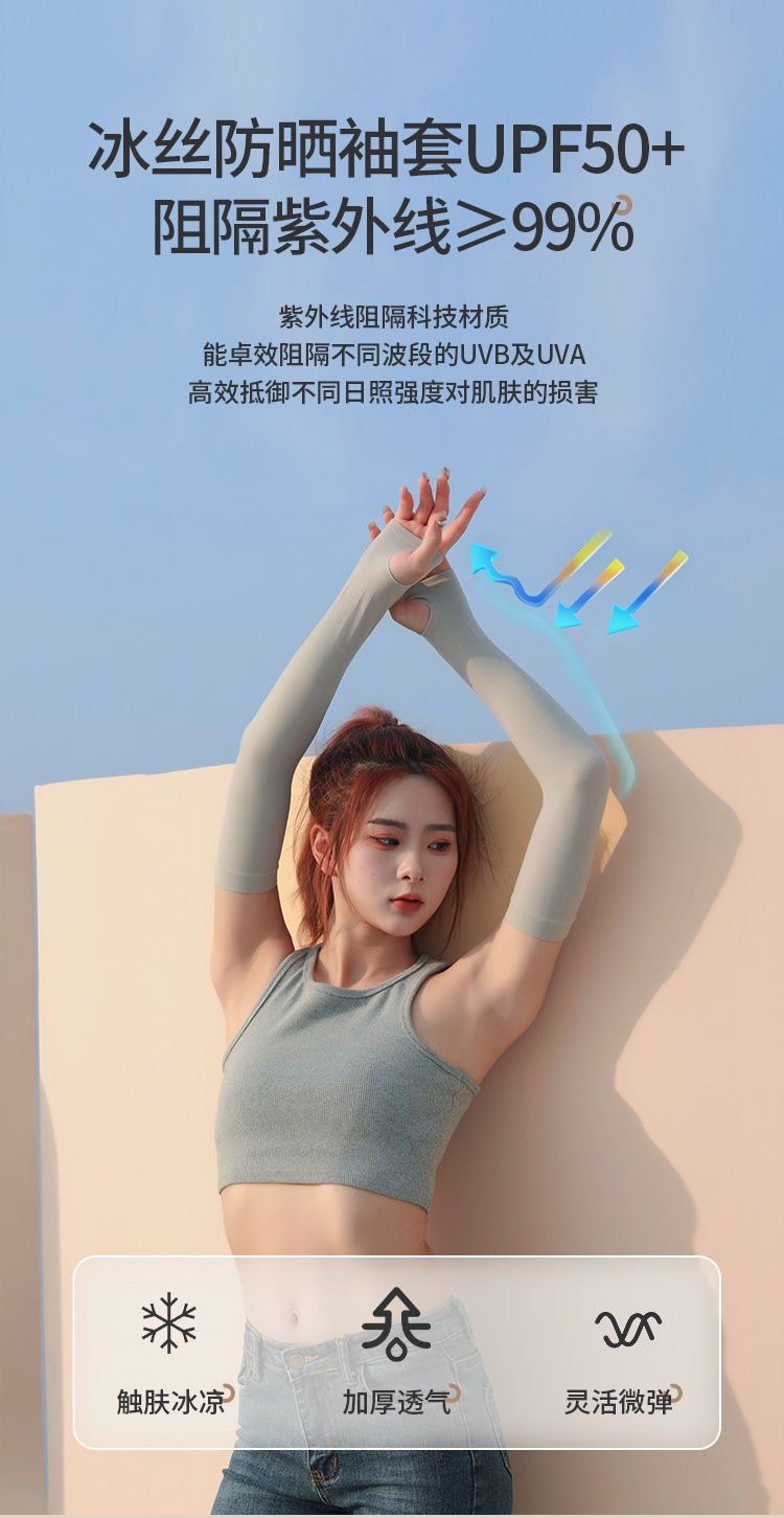 夏のアラブ女性の純色の愛の木の耳元の日焼け止めの袖は氷の袖をかぶせて紫外線の腕の袖を防ぎます。