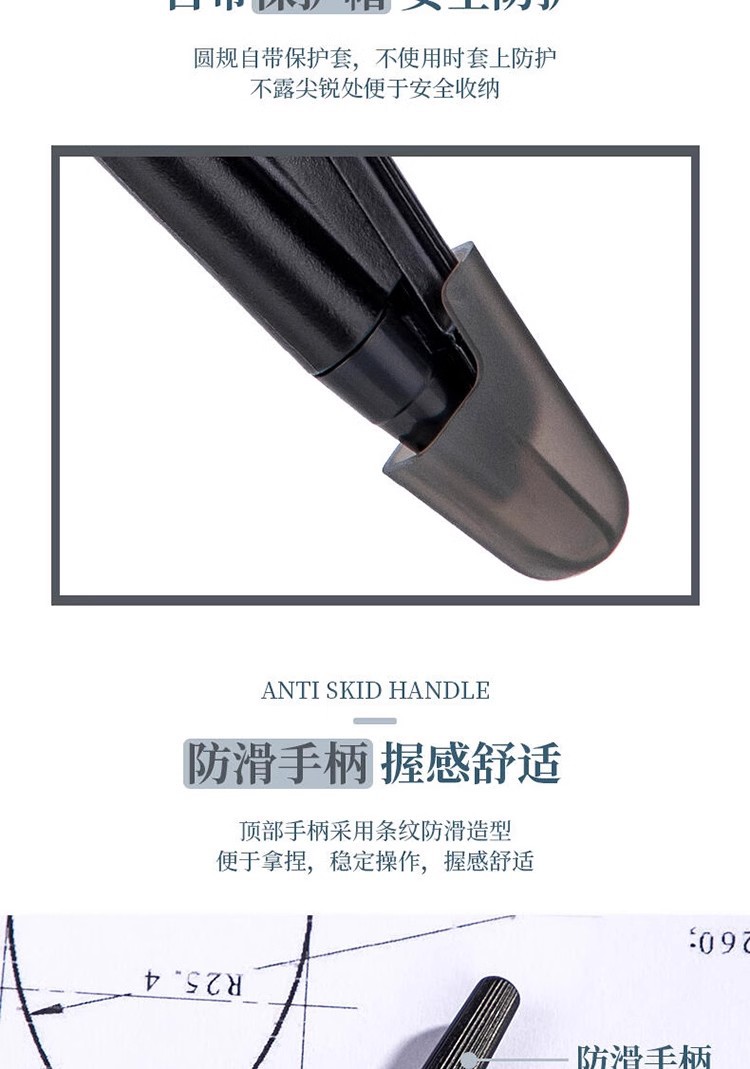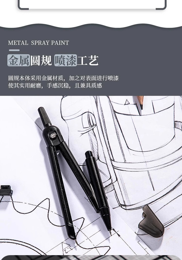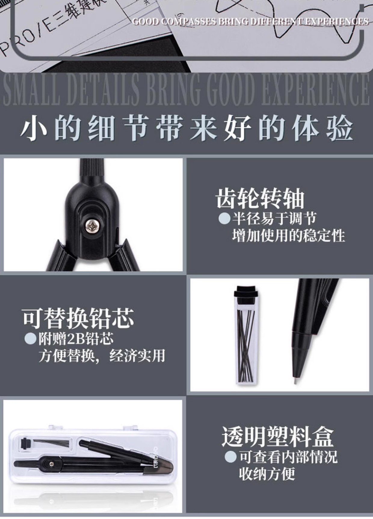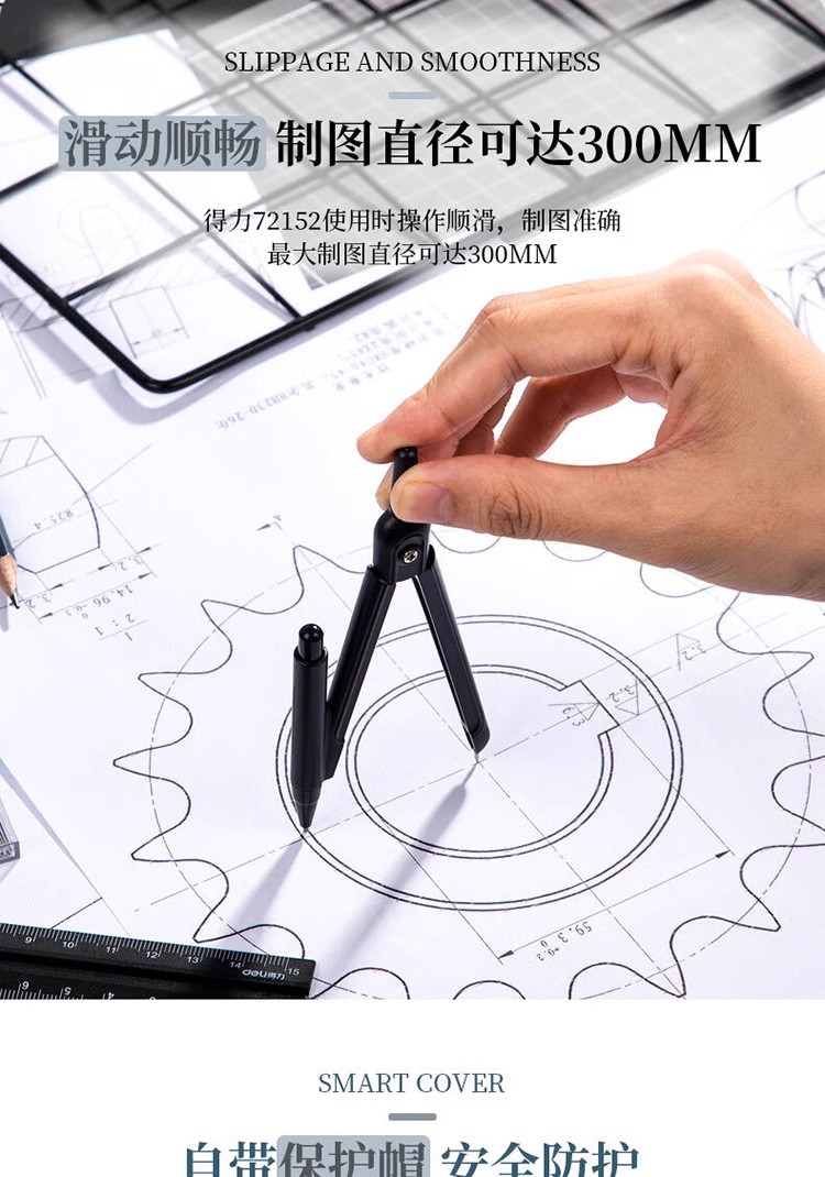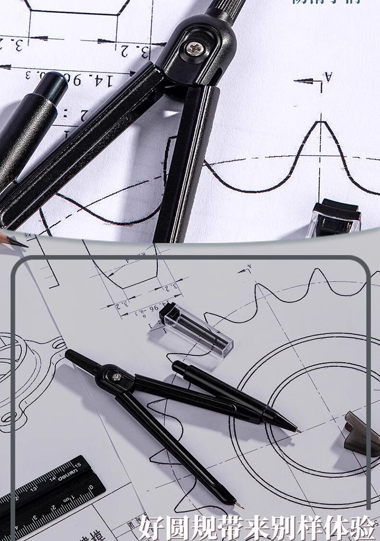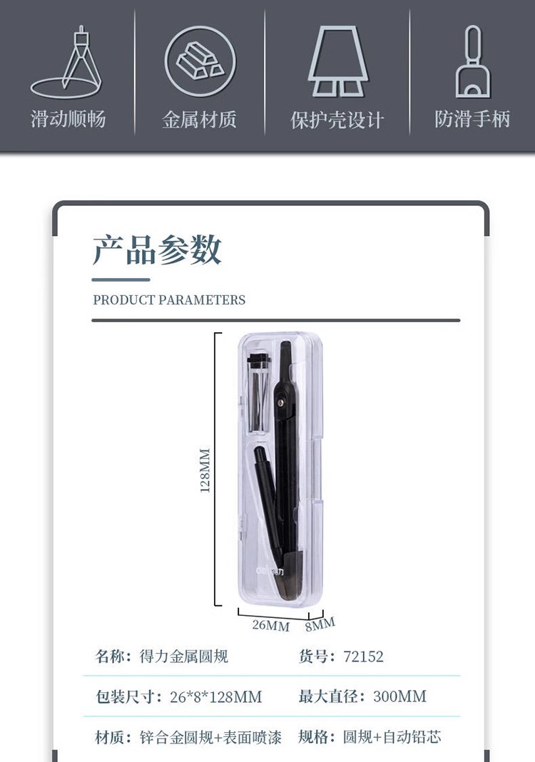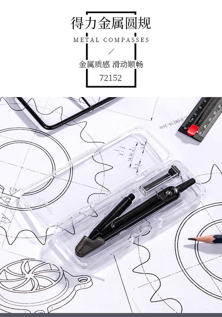 得力72152黒色コンパス金属教育試験用工程製図ツールコンパス画円2b鉛芯
