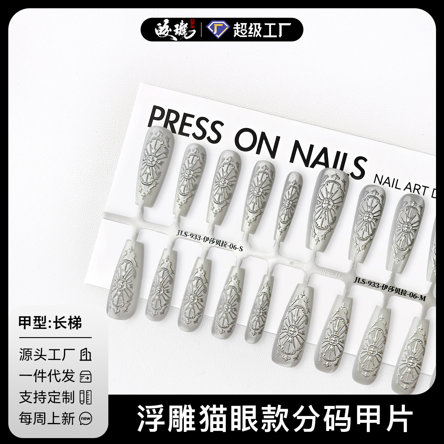 【皓珑】新製品イザベラ猫眼3D着用甲小衆優しく白浮き彫りデザインロングネイルアート