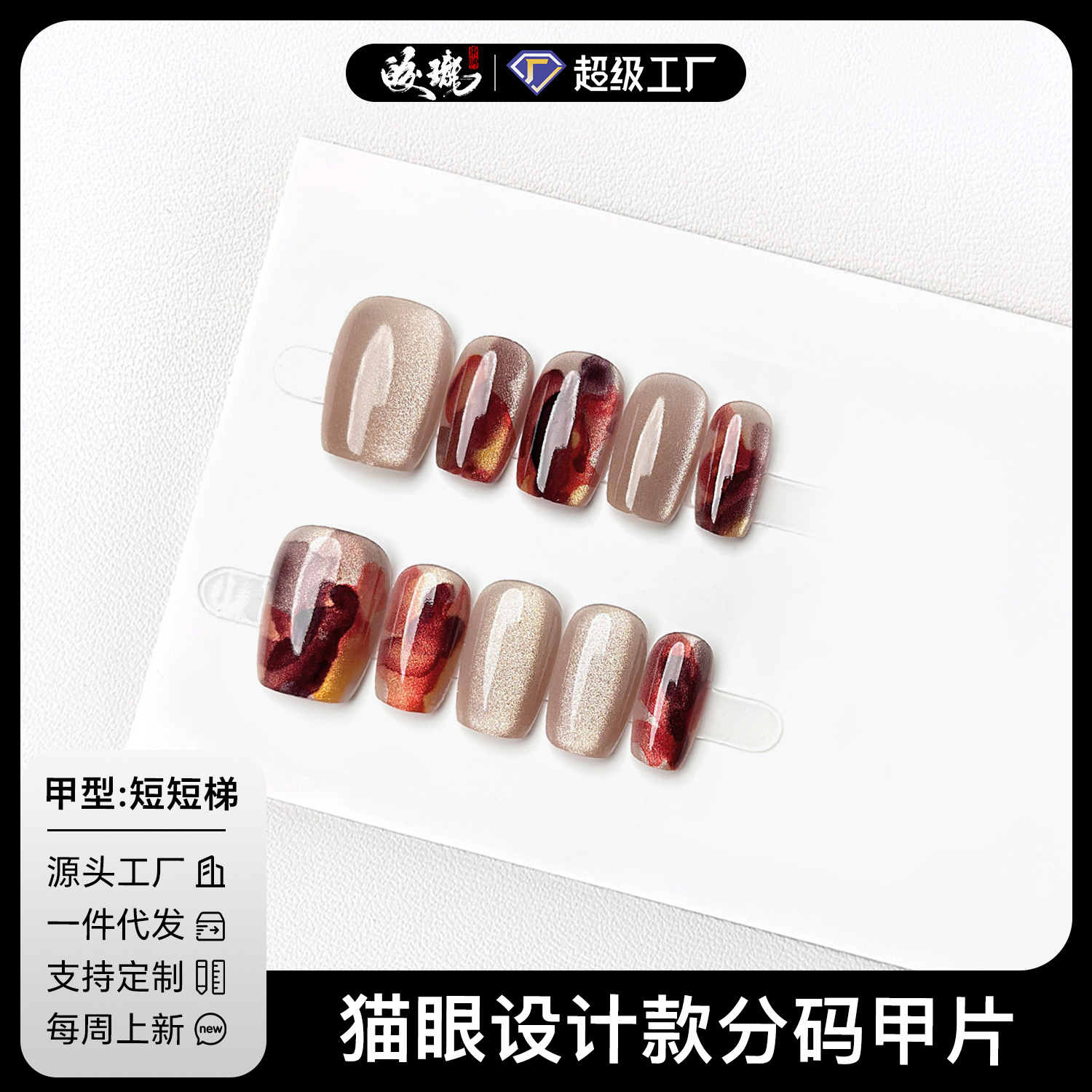 【皓珑】新商品の猫の目は甲の赤い本を着て同じタイプのネイルアートの完成品の卸売りのネイルアートの服装の甲を着ます。