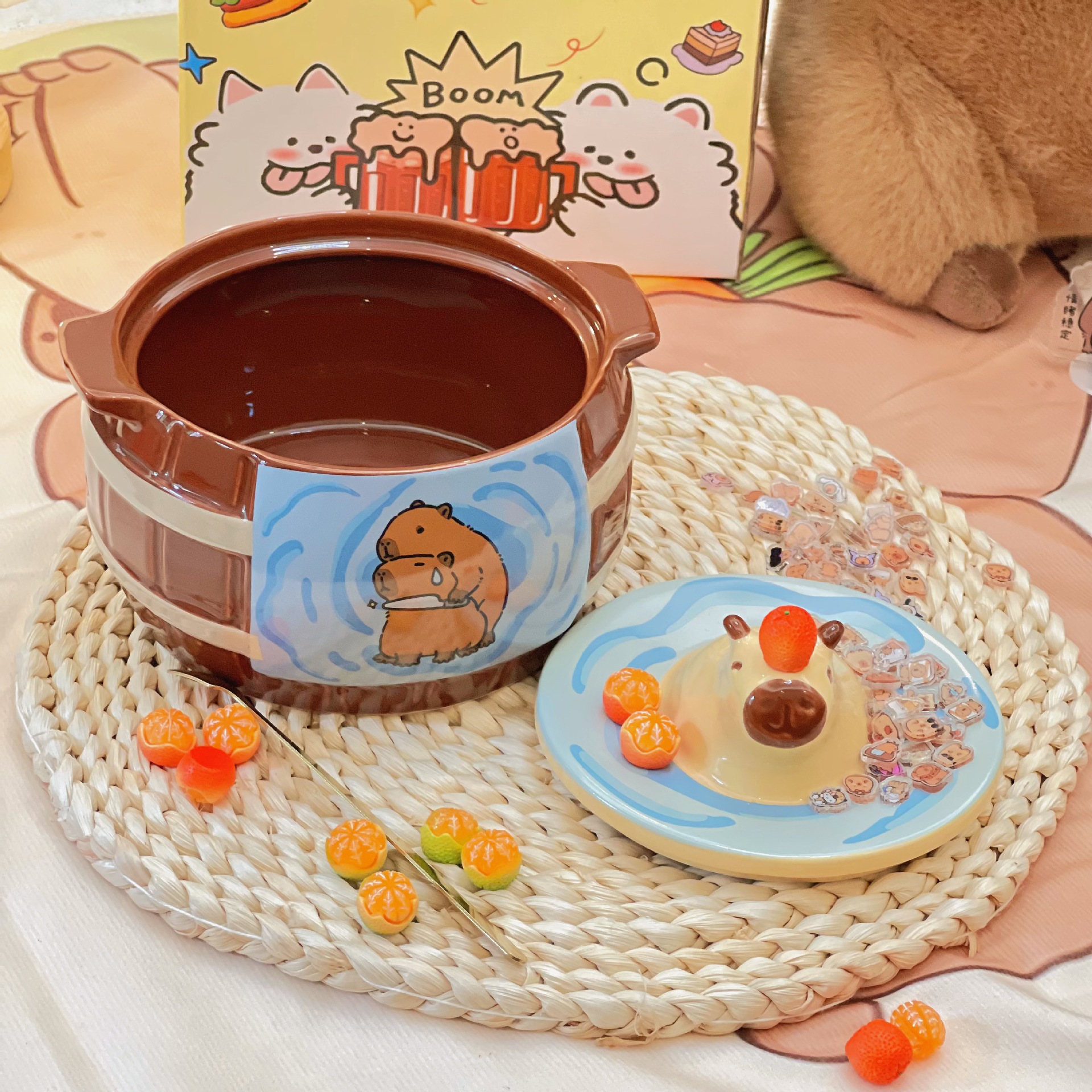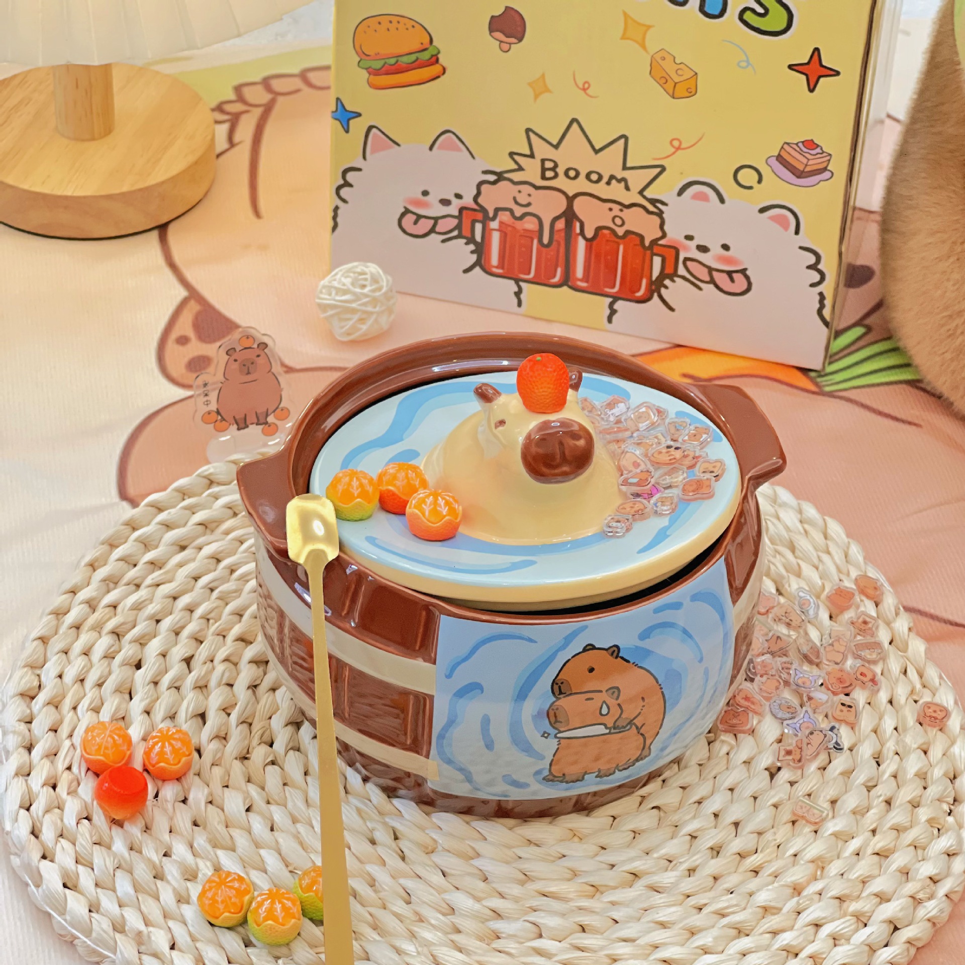 かわいい漫画カピバラインスタントラーメンボウルカピバラ学生寮大容量ライスボウル蓋付き双耳セラミックボウル