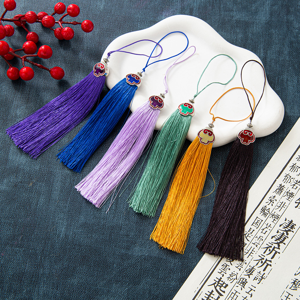 新品13cmロングタイプ如意紋流蘇穂子時代劇漢服圧襟ストラップ景泰藍祥雲流蘇