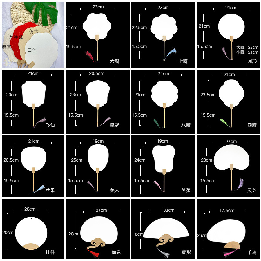 中国式古風挿し糸団扇文創宣紙団扇半生熟書画扇面手描きdiy毛筆字宮扇